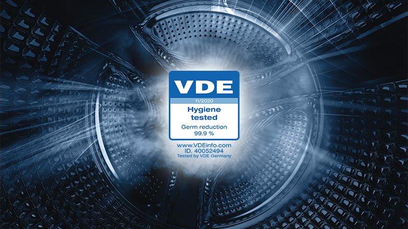 Elég ehhez egy gombot megnyomni. A Higiénia (Hygienic) funkciónak köszönhetően az I-Pro Series 5 szárítógép a baktériumok több mint 99%-át képes eltávolítani a ruhaneműkből. Ez a funkció a Haier által jegyzett, VDE Intézet által tanúsított innováció.