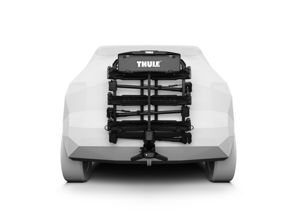 A három kerékpár szállítására alkalmas tartó felhajtható parkolópozícióba, így csökkenti a helyigényt és minimalizálja a sérülésveszélyt. A beépített világítás gondoskodik a megfelelő láthatóságról és a biztonságról.